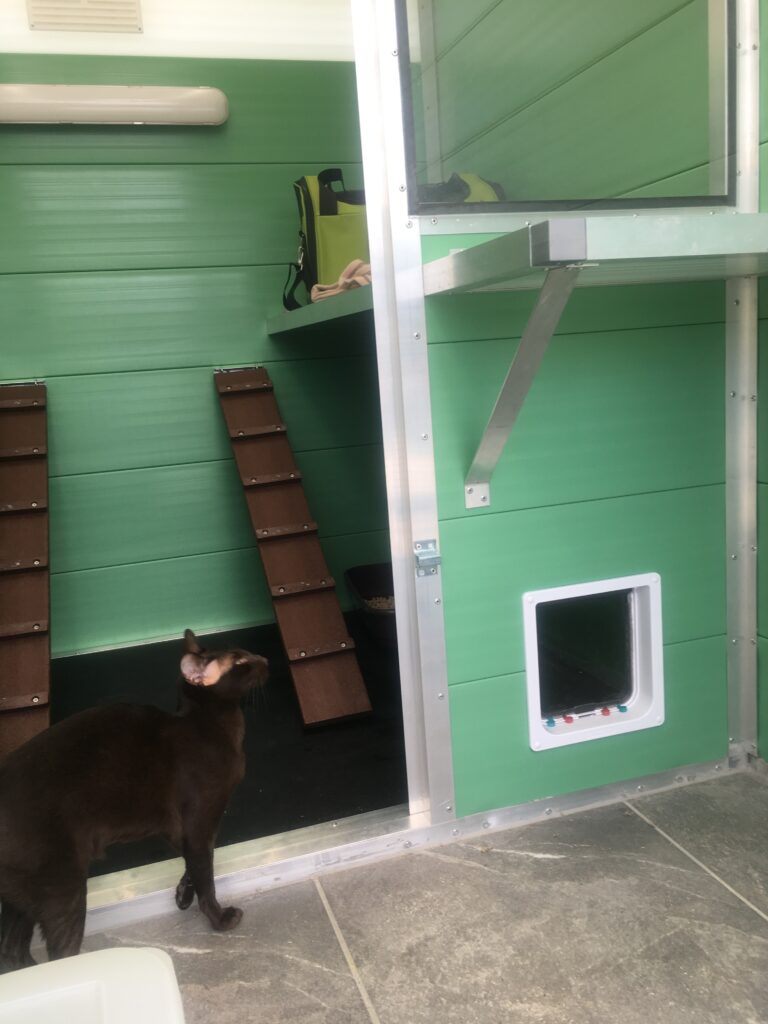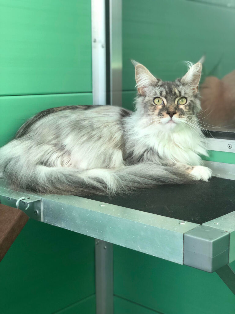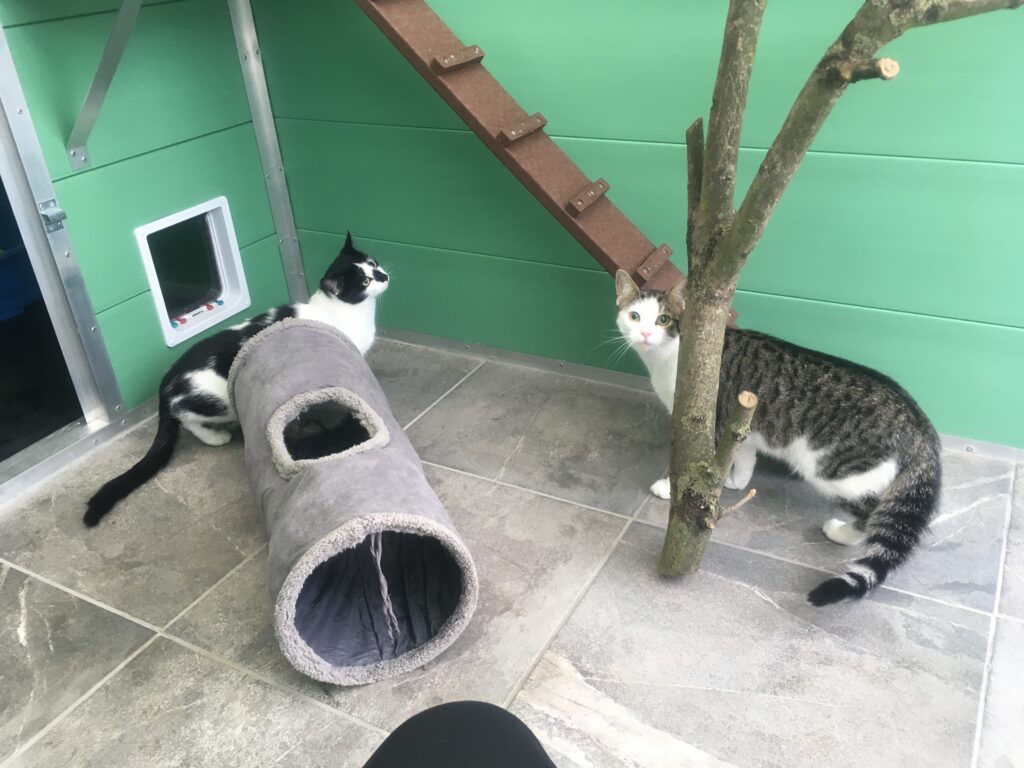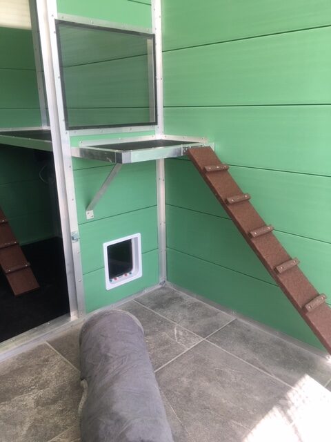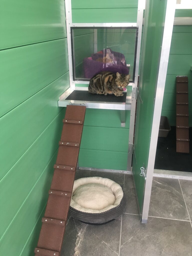 Each cat has its own individual outside exercise and relaxing space plus and internal sleeping and resting area. They have access to shelves, ladders and hiding places to ensure they have an environment that pleases their character.